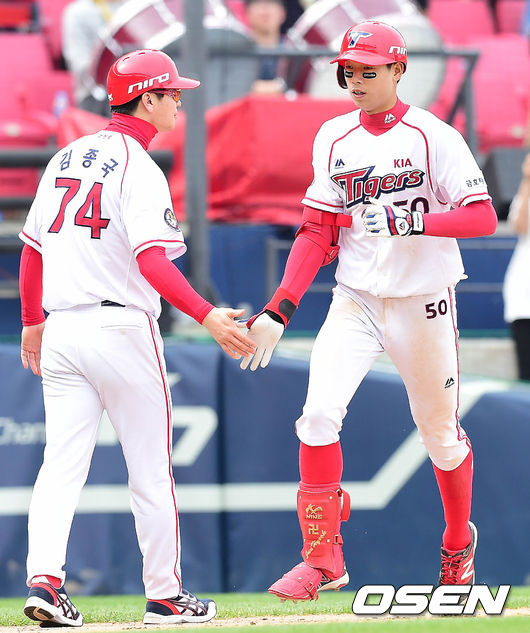 이날 경기전 김기태 감독은 2번 타순을 놓고 고민에 고민을 거듭했다. 1번 김주찬, 3번 필, 4번 나지완 5번, 김주형으로 중심타선을 꾸렸다. 이범호는 허리통증 때문에 선발라인업에세 제외했다. 김주찬과 중심을 이을 2번을 놓고 오준혁 노수광 김호령 윤정우를 놓고 고민했지만 타격에서 부진한 모습 때문에 마땅한 후보가 없었다.