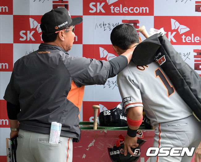한화 김광수 수석 코치가 이용규를 격려하고 있다. / youngrae@osen.co.kr