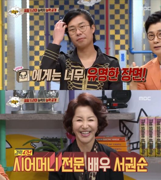 최종 능력 검증을 위해 스튜디오에는 특급 게스트가 등장했다. 시어머니 전문 배우 서권순이 나선 것. 황의준은 서권순과 고난이도 퀴즈 대결을 했는데, 정확하게 정답을 맞혔다. 이에 서권순 역시 “어떻게 이런 사람이 있냐”며 놀라워했다. / besodam@osen.co.kr
