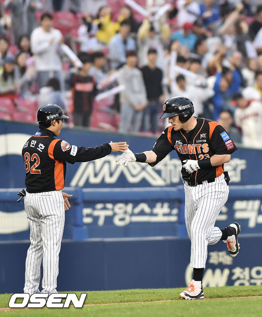 올 시즌 첫 1회초 선두타자 홈런(역대 221호)이자 지난해부터 롯데에서 뛴 아두치의 개인 첫 1회초 선두타자 홈런이다. /orange@osen.co.kr