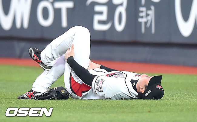 kt 위즈 외야수 유한준이 경기 도중 그라운드에 쓰러졌다.