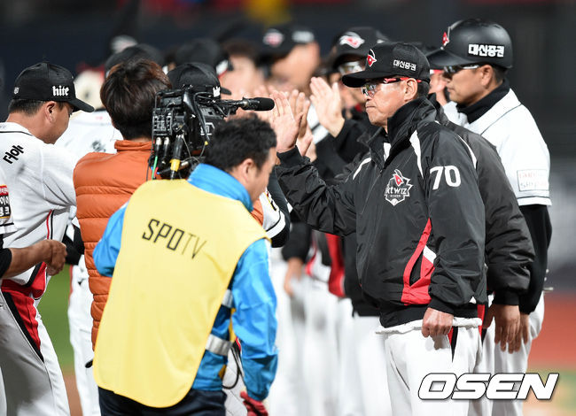 조범현 감독은 경기 후 “초반 리드를 빼앗긴 상황에서도 타자들이 근성 있게 분발해서 대량 득점을 올릴 수 있었다. 반면 투수들은 마운드에서 조금 더 집중력을 가졌으면 한다”라고 말했다. 이어 조 감독은 “초반 5점을 내줬지만 따라갈 수 있다고 생각했다. 그래서 정성곤을 일찍 교체했다”라고 덧붙였다. /krsumin@osen.co.kr
