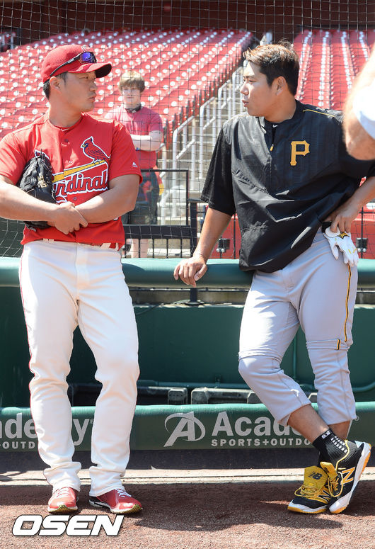 8일(이하 한국시간) 미국 미주리주 세인트루이스의 부시 스타디움에서 열리는 2016 메이저리그 피츠버그 파이어리츠와의 경기를 앞둔 오승환을 클럽하우스에서 만났다. 전날 강정호와는 만나지 못했지만, “바쁠 것이다. 연락은 다 했다“며 그는 괜찮다는 반응을 나타냈다. 이날은 그라운드에서 오랜만에 만나 인사를 나눌 수 있었다.
