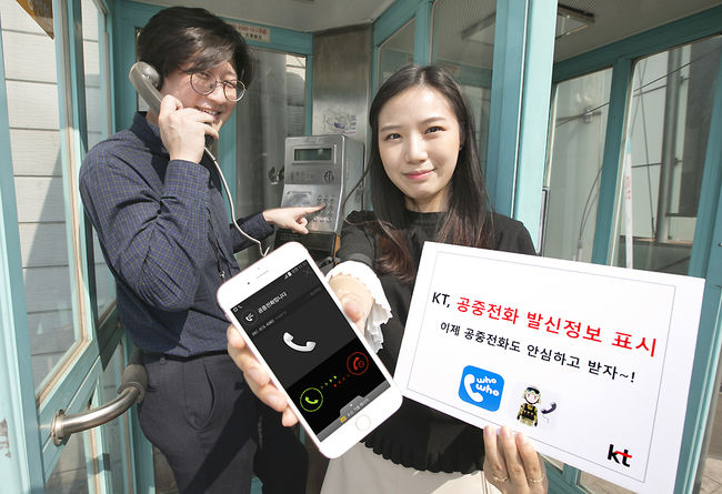 KT는 공중전화에서 발신된 통화를 수신한 단말에 공중전화의 위치별 발신정보를 표시해 주는 '공중전화 발신정보 표시 서비스'를 개시했다고 9일 밝혔다.