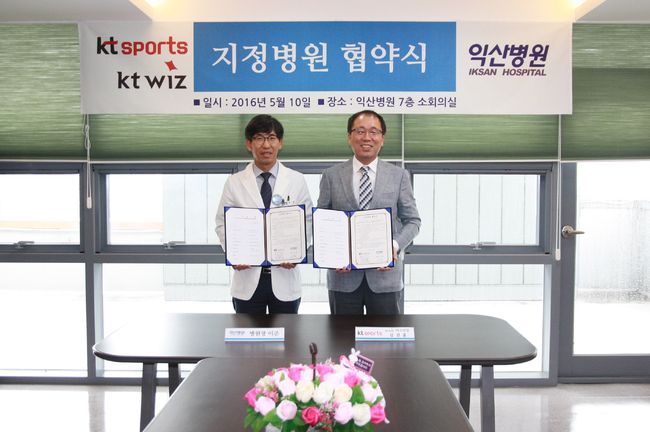 kt wiz 프로야구단 (대표이사 김준교, ktwiz.co.kr)이 10일 대산 의료재단 익산 병원에서 김진훈 야구단장을 비롯해 이준 병원장, 황진수 진료처장 등 관계자 10여명이 참석한 가운데 지정병원 협약을 체결했다.