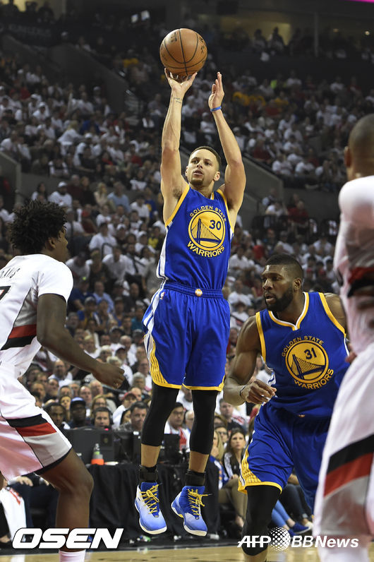 부상으로 결장 중이던 커리는 10일 포틀랜드와의 플레이오프 2라운드 4차전에서 복귀했다. 경기 초반 커리는 에어볼을 쏘는 등 정상이 아니었다. 하지만 그는 연장전에서만 17점을 몰아넣는 미친 활약으로 40득점, 팀을 132-125 승리로 이끌었다. 그야말로 게임과 같은 믿기 어려운 활약이었다. 커리는 12일 계속되는 5차전에서 서부컨퍼런스 파이널 진출에 도전한다. / jasonseo34@osen.co.kr
