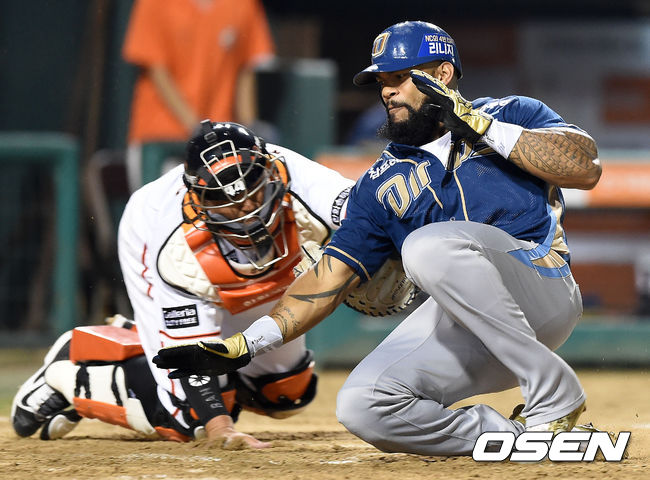 하지만 그때 한화 좌익수 장민석의 존재감이 빛났다. 박석민의 타구가 다소 빨랐고, 장민석은 빠르게 공을 낚아챈 뒤 홈으로 송구했다. 장민석의 송구는 포수 조인성에게 다이렉트로 향했고, 테임즈의 발을 앞찔렀다. 조인성이 비교적 여유 있게 테임즈를 태그 아웃시키며 이닝 종료.