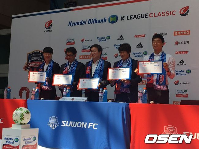 수원FC와 수원 삼성은 오는 14일 수원종합운동장에서 펼쳐지는 K리그 클래식 2016 10라운드서 맞대결을 펼친다. 역사적인 첫 지역더비인 '수원더비'의 주인공인 수원FC와 수원 삼성은 12일 수원시청에서 기자회견을 가졌다. 이날 기자회견에는 염태영 수원시장일 비롯해 양팀 사령탑과 주장이 참석했다.