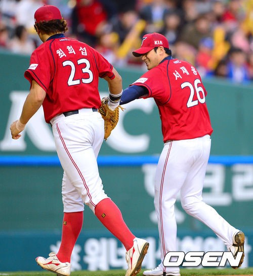 한국인 메이저리거 1세대 서재응(39)과 최희섭(37)이 KIA 타이거즈 유니폼을 입고 합동 은퇴식을 갖는다. KIA는 15일 광주-기아 챔피언스필드에서 열리는 한화와 홈경기를 앞두고 두 선수를 위한 은퇴 행사를 마련했다. 지난 시즌을 끝으로 은퇴한 두 선수는 해설자로 제2의 야구 인생을 시작했지만 여전히 타이거즈 심장을 갖고 있었다. 이날 경기를 앞두고 취재진을 만난 두 선수는 타이거즈에 대한 애정을 가감 없이 내비쳤다. 다음은 일문일답.