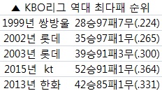 쌍방울·롯데 97패 넘어 100패 우려