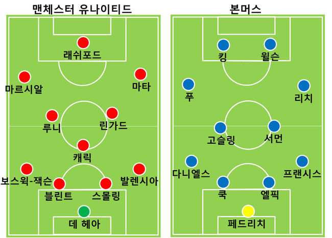 2골을 내리 성공시킨 맨유는 여유가 생겼다. 맨유는 후반 30분 마타 대신 안데르 에레라, 후반 34분 래쉬포드 대신 멤피스 데파이, 후반 39분 마르시알 대신 애슐리 영을 투입했다. 맨유는 새롭게 들어간 영이 후반 42분 루니의 패스를 받아 추가골을 넣어 승리에 쐐기를 박았다. 맨유는 후반 48분 크리스 스몰링의 자책골이 나왔지만 승패에는 영향을 주지 못했다. /sportsher@osen.co.kr