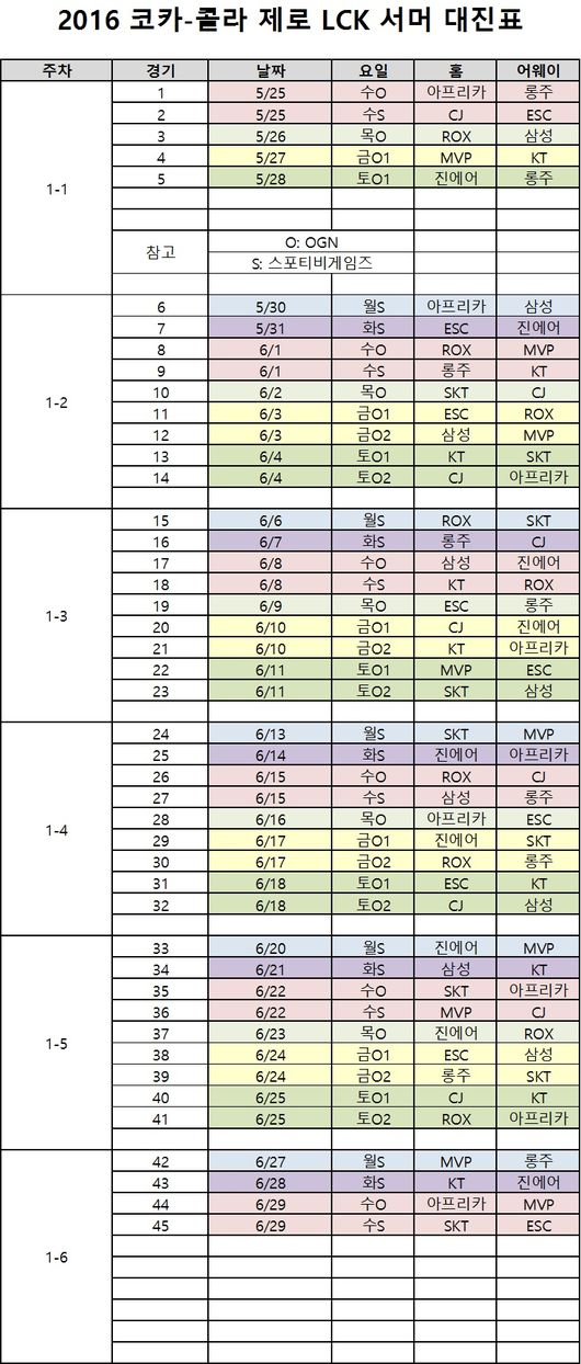 라이엇게임즈는 18일 ‘2016 코카콜라 제로 LoL 챔피언스 코리아(이하 롤챔스)’ 서머 시즌의 세부 일정과 대진표를 발표했다.