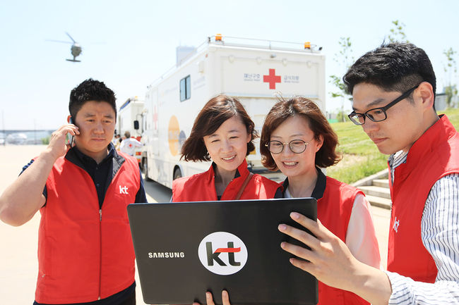 KT는 18일 서울 여의도 공원에서 KT 그룹 임직원 봉사단, 대한적십자사, 국민안전처, 여의도 수난구조대, 영등포 경찰서 등 720여명이 참석한 가운데 민·관·군 합동 복합 재난 대응훈련을 지원했다고 밝혔다.