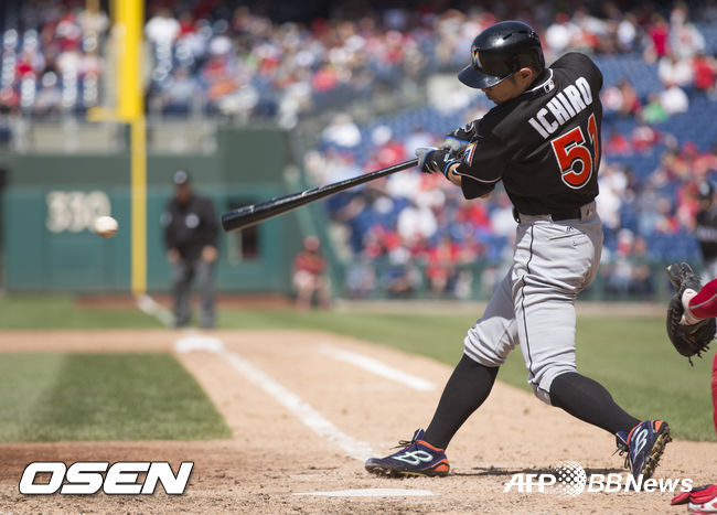이치로는 올해 30경기 중 선발출장이 7경기에 불과하다. 지난해 135경기 중 89경기가 선발이었지만 올해는 기회가 줄어들었다. 좌익수 크리스티안 옐리치, 중견수 마르셀 오수나, 우익수 지안카를로 스탠튼으로 이어지는 외야진이 탄탄해 선발출장 기회를 얻기 어려운 것이다.
