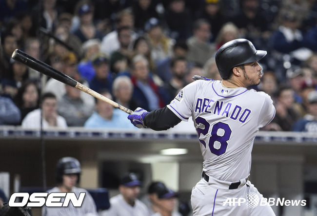 전날까지 요에니스 세스페데스(뉴욕 메츠)와 함께 홈런 공동 선두를 달리고 있었던 아레나도는 단독 1위로 올라섰다. /skullboy@osen.co.kr