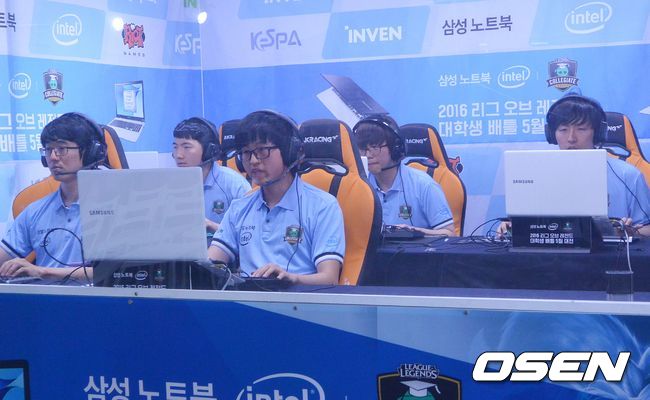 포스텍이 21일 선릉 인벤 방송국에서 열린 ‘2016 삼성 노트북-인텔 인사이드 대학생 배틀 5월 대전(이하 대학생배틀)’ 카이스트와 결승서 1세트를 선취했다.