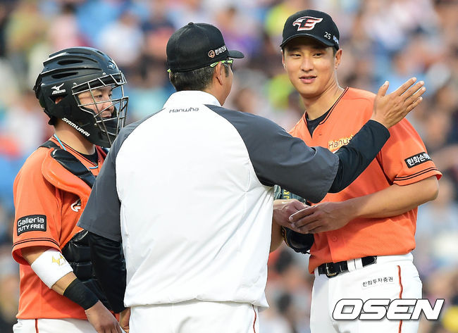 선발은 길게, 불펜 활용법은 그대로. 한화 김성근 감독이 허리 수술 후 돌아온 2경기에서 나타낸 마운드 운용의 특징이다.