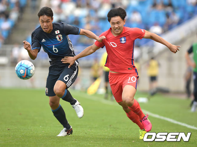 한일전도 전반전은 답답했다. 한국은 경기 주도권을 쥐었음에도 슈팅으로 연결하지 못했다. 전반전 한국의 유효슈팅은 단 하나에 불과했다. 폭염주의보가 내린 더운 날씨도 선수들 발을 묶었다. 안익수 감독은 후반전 시작과 함께 공격수 원두재, 김진야, 김무건을 한꺼번에 빼고 조영욱, 이동준, 김시우를 투입했다. 답답했던 공격은 그제야 풀리기 시작했다.