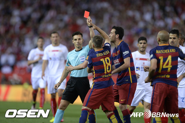 23일(이하 한국시간) 스페인 마드리드에서 열린 2015-2016 코파 델 레이(스페인 국왕컵) 결승전. 전반 36분 바르셀로나 선수들을 모두 그란데 주심에게 달려가 항의를 했다. 델 세로 주심이 마스체라노의 퇴장을 선언한 것에 대한 항의였다. 그러나 그란데 주심은 판정을 번복하지 않았다.