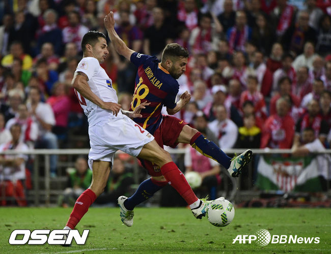 수적으로 동등해진 바르셀로나는 연장전에 반전을 일궈냈다. 경기의 흐름을 다시 가져오던 바르셀로나는 연장 전반 7분 선제골을 넣은 것. 리오넬 메시가 중원에서 시도한 긴 패스를 왼쪽 측면으로 침투하던 호르디 알바가 잡아 왼발 슈팅으로 세비야의 골망을 갈랐다.