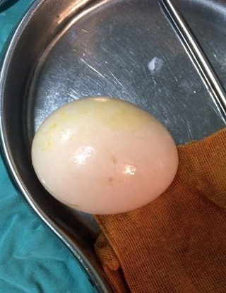 이 커플이 병원을 찾은 이유는 성관계 도중 여성의 국부에 집어 넣어 한 개의 계란 때문이었다.