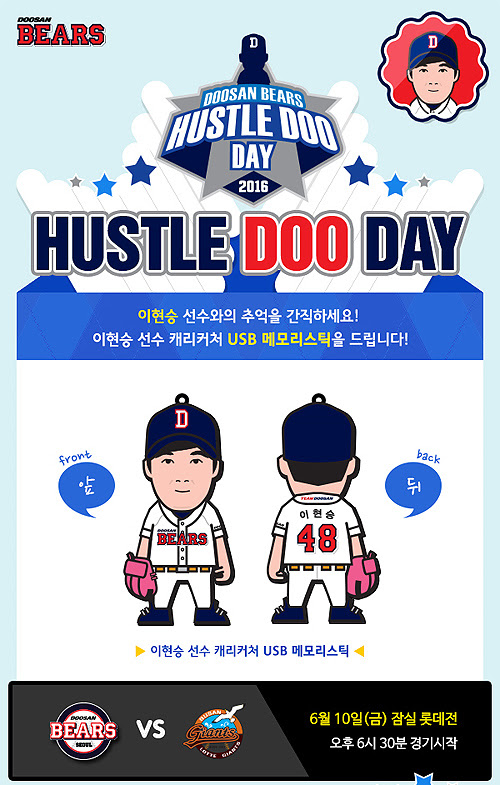 두산베어스는 6월 10일 잠실 롯데전에 '허슬두데이(Hustle Doo Day)' 이벤트를 실시한다.
