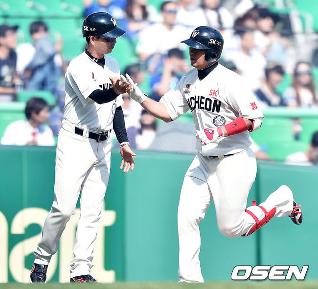 이날 윤성환을 상대로 앞선 두 번의 타석에서 모두 안타로 출루했던 최정은 홈런 부문 경쟁에도 합류했다. 경기는 삼성이 여전히 8-2로 넉넉한 리드를 안고 있다. /skullboy@osen.co.kr