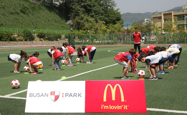 부산 아이파크 프로축구단과 함께 맥도날드가 ‘로날드 맥도날드 어린이 축구교실’을 시작했다.