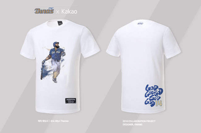 NC 응원 티셔츠는 총 6종으로 나성범, 테임즈, 박석민 선수의 캐리커처 또는 캘리그래피가 담겨 있다. 캘리그래피는 선수의 별명을 활용했다. 테임즈 캘리그래피의 경우, 지난 해 47홈런, 40도루, 140타점, 130득점 등 가공할 만한 기록을 세우며 인간계를 넘어 신계에 도전한다는 의미로 ‘에릭 테임즈’의 각 음절을 ‘갓(God)’으로 대체한 ‘갓갓 갓갓갓’ 별명을 담았다. 2008년 베이징 올림픽 야구 대표팀 유니폼 등을 디자인했던 대한민국 대표 스포츠 아티스트 광작가가 이번 티셔츠의 일러스트를 맡았다.