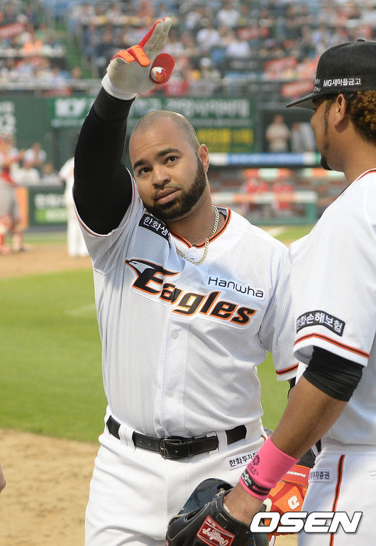 한화 외국인 타자 윌린 로사리오가 시즌 10호 홈런을 장외포로 장식했다.