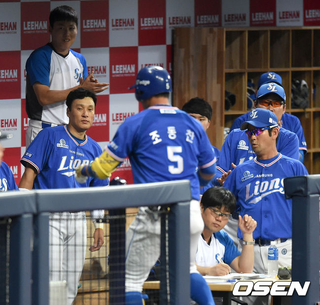 삼성은 시즌 타율 3할7푼5리로 활약하던 구자욱이 28일 허리 통증으로 1군 엔트리에서 빠졌고 외국인 타자 아롬 발디리스도 5일 아킬레스건 부상으로 2군에 내려가 거의 한 달째 모습을 보이지 않았다. 그러나 이승엽과 조동찬이 내야를 꽉 메워주고 있어 팀의 연승 질주가 힘을 받고 있다. /autumnbb@osen.co.kr