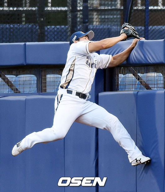 우익수 나성범은 3회 무사 1루에서 민병헌의 우측 파울 타구를 전력 질주해 마지막 점프 캐치로 잡아냈다. 캐치 후 펜스에 부딪혔지만 몸을 사리지 않는 호수비였다.