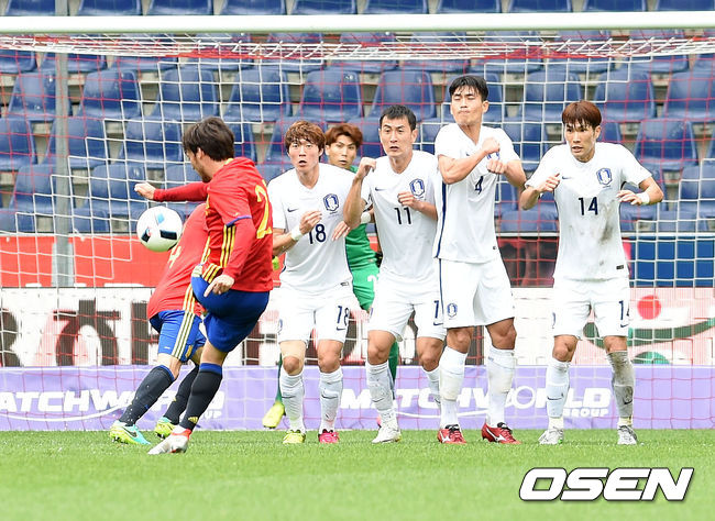 울리 슈틸리케 감독이 이끄는 한국은 1일(한국시간) 오스트리아 잘츠부르크에 위치한 레드불 아레나서 열린 스페인과 친선경기서 0-3으로 뒤진 채 전반을 마무리했다. 스페인은 국제축구연맹(FIFA) 랭킹 6위의 세계적인 강호로, 한국은 스페인보다 크게 뒤처지는 54위에 올라 있다.