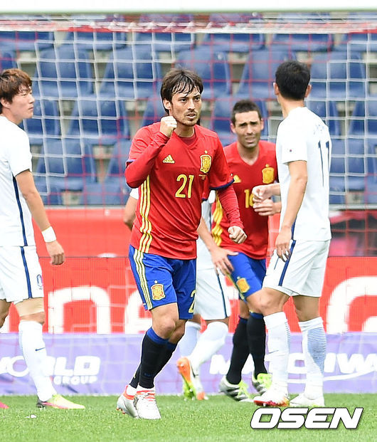 잘 싸우던 한국이 다비드 실바(맨체스터 시티)의 환상 프리킥 득점에 무너졌다.