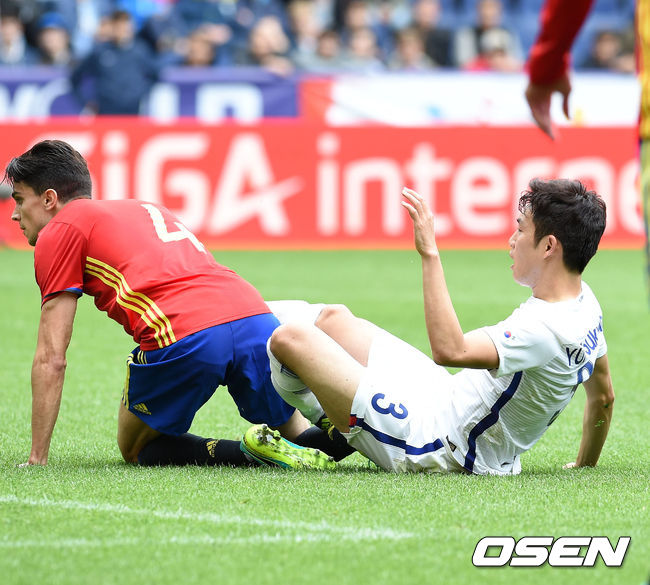 윤석영(찰튼)이 고개를 숙였다. 수비수로서 당연하다. 1일(이하 현지시간) 오스트리아 잘츠부르크에서 열린 스페인과 친선경기에서 윤석영이 선발로 출전한 가운데 한국은 1-6으로 패배했다. 왼쪽 측면 수비수로 나선 윤석영은 후반 36분 임창우와 교체됐다.