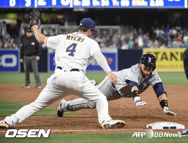 이대호는 2일(한국시간) 미국 캘리포니아주 샌디에이고의 펫코 파크에서 열린 2016 메이저리그 샌디에이고 파드리스와의 경기에서 3회초 선두타자로 나와 좌측 펜스를 때리는 큰 타구를 날렸다.