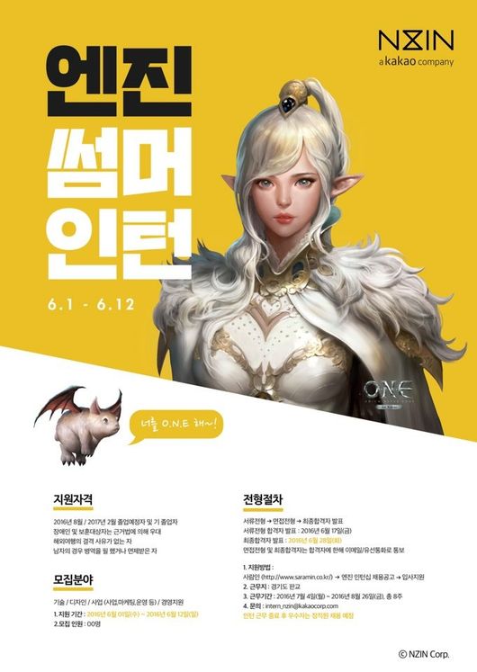 카카오의 게임 전문 계열사 엔진이 오는 12일까지 하계 인턴 사원을 모집한다.