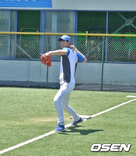 ▲많이 좋아졌다. 통증을 없애고 하는 게 낫다고 해서 어제까지 계속 치료만 받다가 오늘부터 티배팅과 캐치볼을 시작했는데 별 이상이 없다.