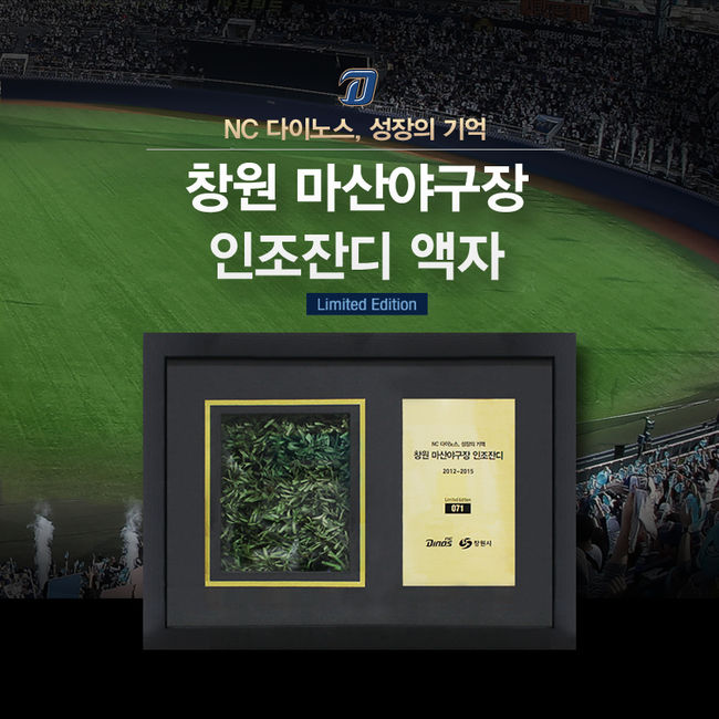 NC 다이노스가 창단부터 지난 2015시즌까지 구단 성장의 기억을 담은 기념 상품을 내놓았다. 2015시즌 종료 후 창원시의 협조로 마산야구장 그라운드를 천연잔디로 교체하면서 이전까지 사용했던 인조잔디를 활용한 기념 액자이다.