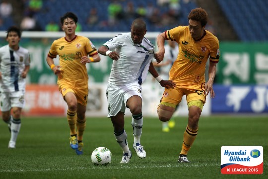 전북은 4일 오후 광주월드컵경기장서 열린 광주와 2016 현대오일뱅크 K리그 클래식 10라운드 원정 경기서 후반 29분 이동국이 헤딩 결승골을 넣었지만 5분 뒤 송승민에게 헤딩 동점골을 내주며 1-1로 비겼다.