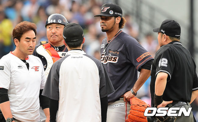 한화 에이스 에스밀 로저스(31)는 지난 4일 대구 삼성전에서 3회 투구 중 스스로 마운드를 내려갔다. 1회부터 전력으로 투구하지 못하며 마운드에서 어정쩡한 동작을 반복한 로저스는 2회 안정을 찾는가 싶었지만 3회 결국 교체됐다. 오른쪽 팔꿈치 통증이 이유. 선수 보호 차원으로 강판되며 아이싱을 받은 로저스는 상태를 조금 더 지켜보기로 했다.
