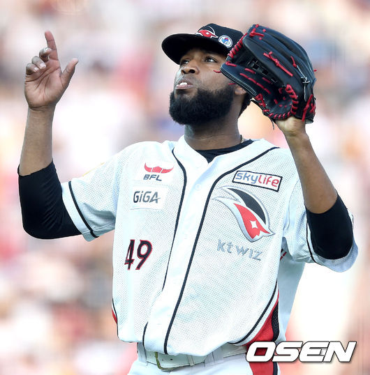 kt는 6회초 마리몬을 내리고 피노를 등판시켰다. kt는 5회까지 10-0으로 크게 앞서 있다. kt그 경기 끝까지 리드를 지키면 마리몬은 시즌 6승을 올린다. / drjose7@osen.co.kr