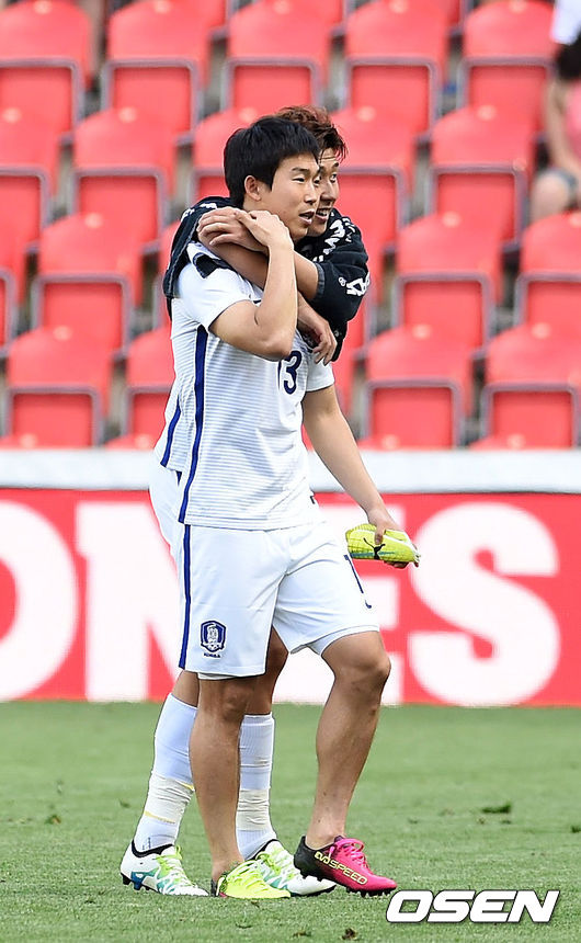 경기를 마치고 윤빛가람과 손흥민이 승리의 기쁨을 나누고 있다./spjj@osen.co.kr