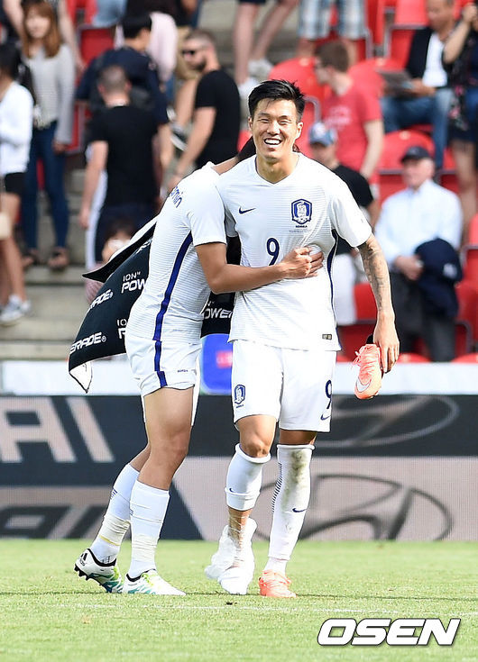 경기를 마치고 한국 석현준과 손흥민이 승리의 기쁨을 나누고 있다./spjj@osen.co.kr