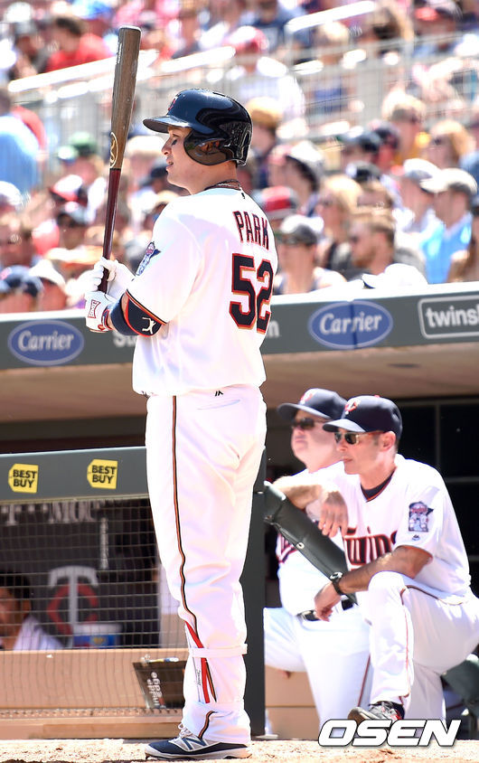 6일(한국 시각) 미국 미네소타주 미니애폴리스 타겟 필드에서 열린 '2016 메이저리그' 미네소타 트윈스와 탬파베이 레이스의 경기, 2회말 2사 만루 미네소타 박병호가 경기를 지켜보고 있다.