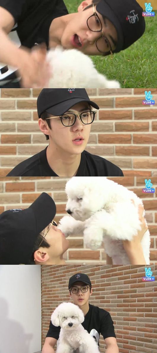 세훈은 6일 네이버 생중계앱 V앱의 엑소멘터리(Exomentary) 라이브 스페셜 첫 주자로 나섰다. '세훈의 강아지를 부탁해'라는 타이틀처럼 이날 방송은 그의 반려견 비비와 함께 했다.