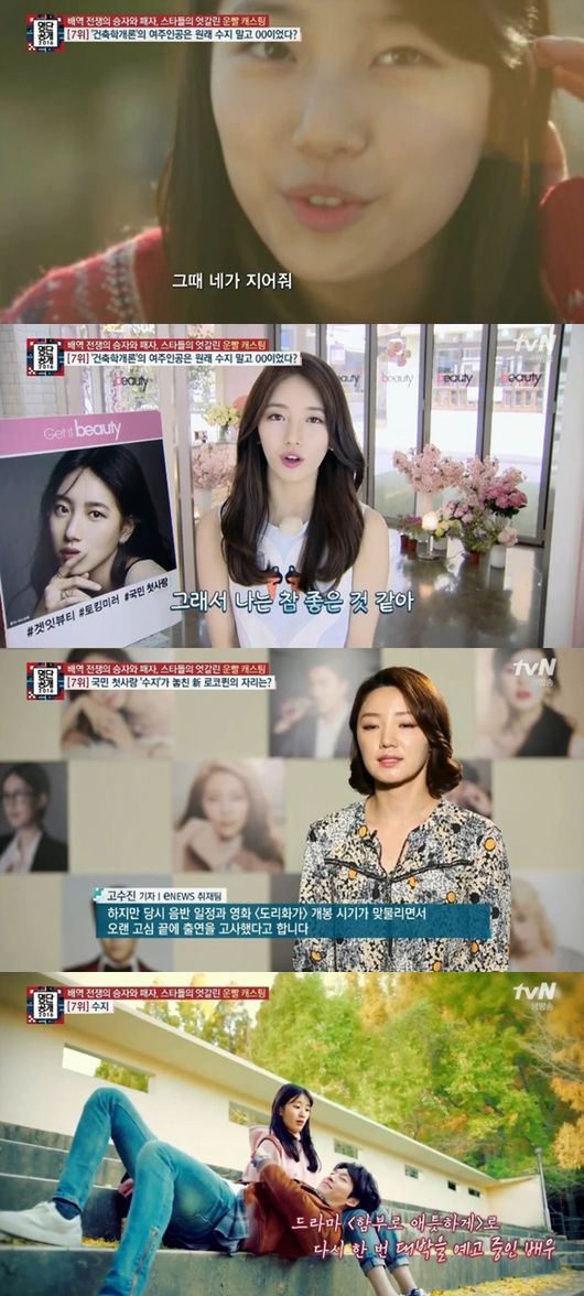 수지는 영화 '건축학개론'으로 일명 '국민 첫사랑'이라는 타이틀을 거머쥐었다. 하지만 이날 방송에서는 소녀시대 서현과 문채원이 먼저 제안을 받은 것으로 알려져 눈길을 끌었다.