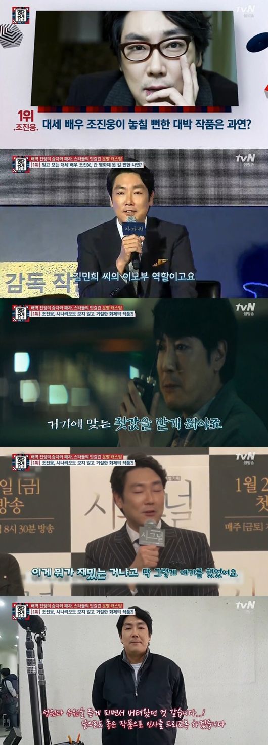 이날 대망의 1위는 조진웅. 그는 최근 화제작 '아가씨'와 '시그널'을 놓칠 뻔 했다는 사실을 알렸다. 특히 '시그널'은 시나리오도 보지 못하고 거절할 뻔 했지만, 김원석 감독의 끈질긴 설득으로 제안을 수락, 광고계의 수많은 러브콜은 물론 다양한 작품들에 캐스팅되며 대세로 떠올랐다.