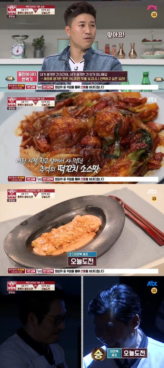6일 오후 방송된 JTBC 예능프로그램 '냉장고를 부탁해'에서는 김종민의 냉장고 속 요리를 재료로 대결을 펼치는 셰프들의 모습이 그려졌다.