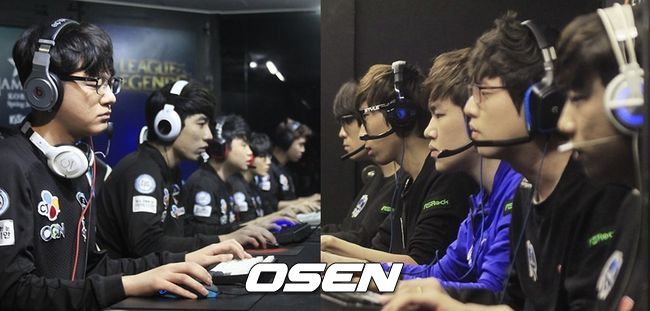[사진] CJ 엔투스(왼쪽)와 롱주 게이밍.